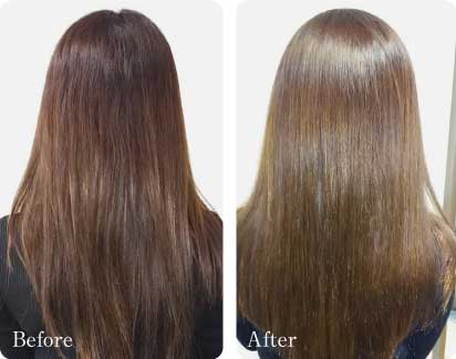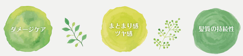 ジャマなうねりを程よく抑えながらダメージをケアし、ヘアースタイルのまとまり感やツヤ感、トリートメントの定着をアップさせます。やわらかい仕上がりになるため縮毛矯正ではつくりにくかったブロースタイルやアイロンでカールスタイルなどがスムーズに作れます。